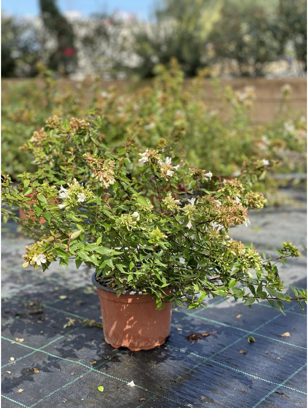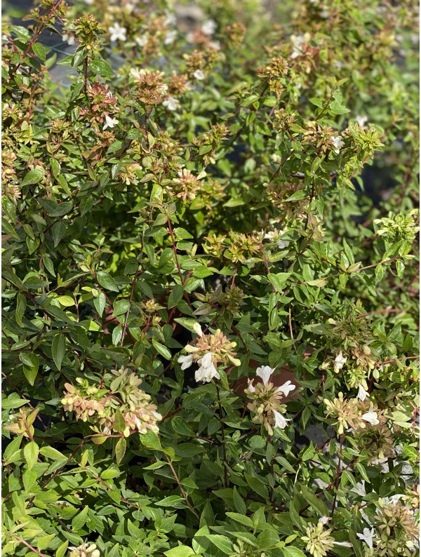 L'Abelia è una pianta molto apprezzata per la sua abbondante e duratura fioritura, da Giugno a Ottobre circa. I suoi fiori bianchi hanno la particolarità di essere preceduti da un bocciolo rosa, in modo che sulla pianta siano sempre presenti entrambi i colori, creando un effetto cromatico molto delicato e gradevole.