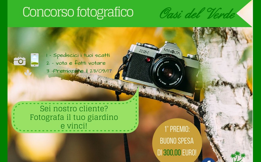 Inviaci i tuoi scatti (tre al massimo) allegandoli ad una mail da spedire a info@oasidelverde.net (le immagini possono essere scattate con qualsiasi supporto, anche telefoni e tablet) entro e non oltre il 30 Giugno 2017, specificando nome, cognome e numero di telefono dell’autore della foto.